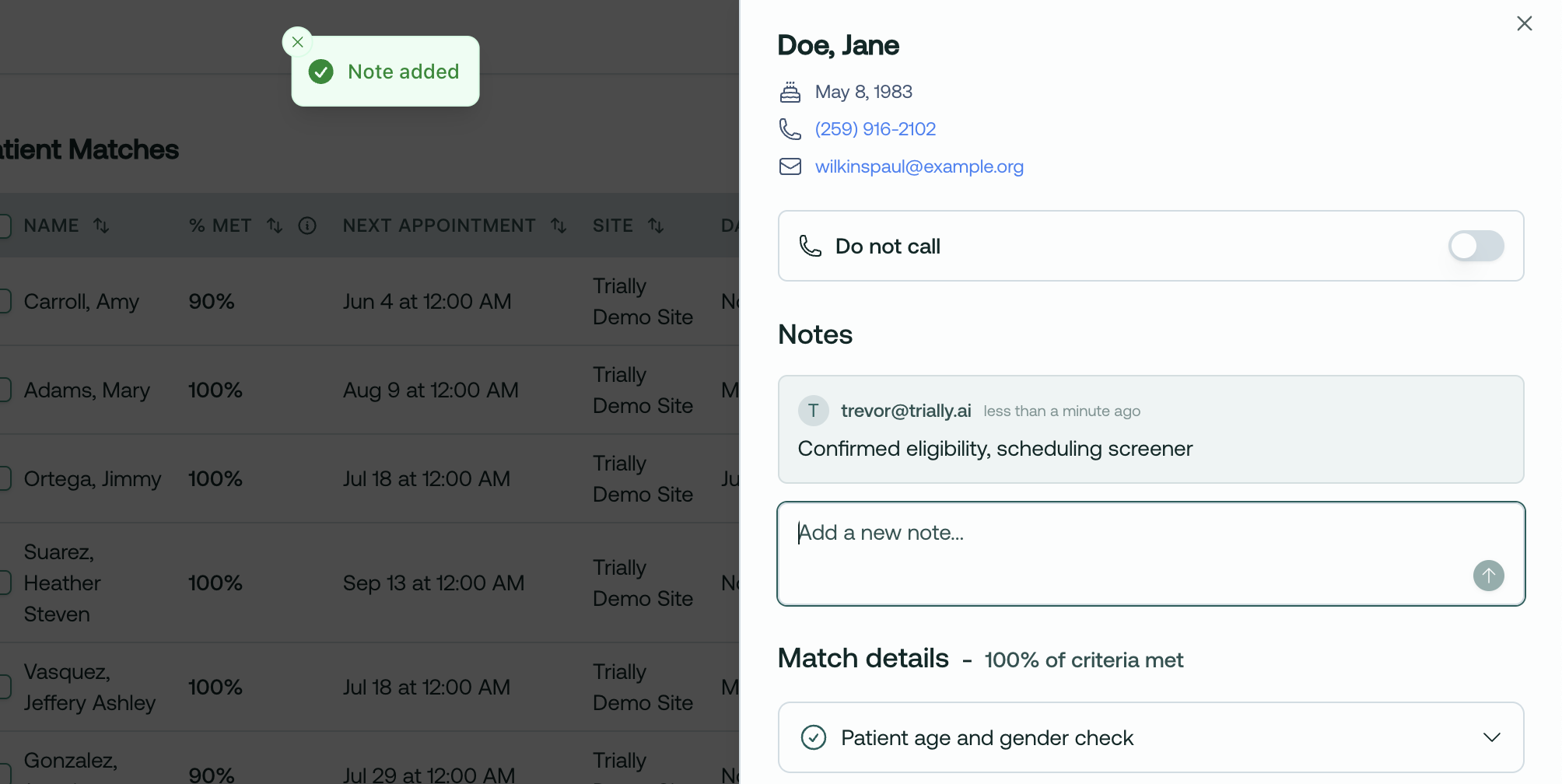 New "Last Match" column shows how recently patients were matched for in the recruiting table